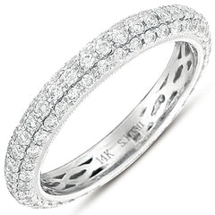 This Band is available in 14K White Gold. There are a total of 117 stones. There are Round with a total carat weight of 0.96 set in a setting.