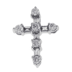 This Pendant is available in 14K White Gold. There are a total of 11 stones. There are Baguette with a total carat weight of 0.08 set in a Channel Set|Prong Set setting.There are Rounds stones with a total carat weight of 0.14 set in a Channel Set|Prong Set.