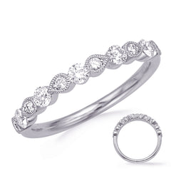 This Band is available in 14K White Gold. There are a total of 11 stones. There are Round with a total carat weight of 0.48 set in a Micro Prong setting.