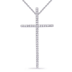 This Pendant is available in 14K White Gold. There are a total of 42 stones. There are Rounds with a total carat weight of 0.3 set in a Micro Prong setting.