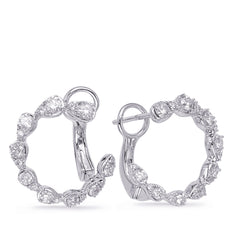 This Earring is available in 14K White Gold. There are a total of 36 stones. There are Rounds with a total carat weight of 0.76 set in a Prong Set setting.