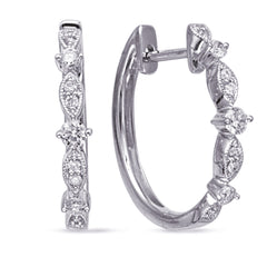 This Earring is available in 14K White Gold. There are a total of 18 stones. There are Rounds with a total carat weight of 0.27 set in a Micro Prong|Prong Set|Shared Prongs setting.