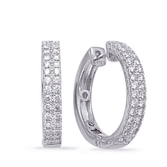 This Earring is available in 14K White Gold. There are a total of 60 stones. There are Rounds with a total carat weight of 0.77 set in a Prong Set setting.