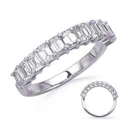 This Band is available in 14K White Gold. There are a total of 11 stones. There are Emerald Cut with a total carat weight of 1.65 set in a setting.