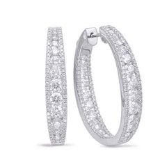 This Earring is available in 14K White Gold. There are a total of 280 stones. There are Rounds with a total carat weight of 3.75 set in a Channel Set|Micro Prong setting.