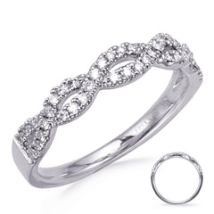 This Band is available in 14K White Gold. There are a total of 48 stones. There are Round with a total carat weight of 0.25 set in a Micro Prong setting.