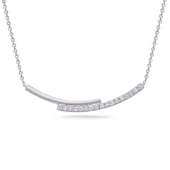This Necklace is available in 14K White Gold. There are a total of 17 stones. There are Rounds with a total carat weight of 0.2 set in a Micro Pave setting.