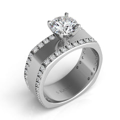 This Engagement Ring is available in 14K White Gold. There are a total of 54 stones. There are Rounds with a total carat weight of 0.57 set in a Micro Pave setting.