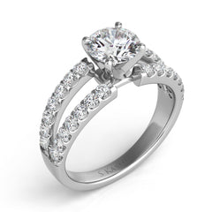 This Engagement Ring is available in 14K White Gold. There are a total of 28 stones. There are Rounds with a total carat weight of 0.7 set in a Prong Set setting.