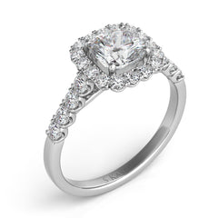 This Engagement Ring is available in 14K White Gold. There are a total of 24 stones. There are Rounds with a total carat weight of 0.53 set in a Prong Set setting.