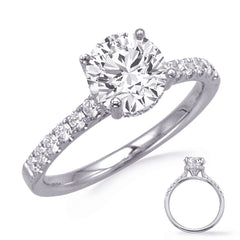 This Engagement Ring is available in 14K White Gold. There are a total of 32 stones. There are Rounds with a total carat weight of 0.38 set in a Prong Set setting.