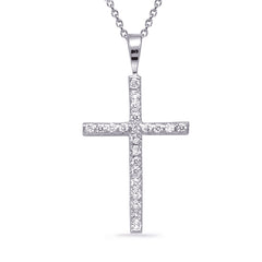 This Pendant is available in 14K White Gold. There are a total of 22 stones. There are Rounds with a total carat weight of 0.19 set in a setting.