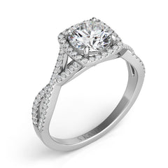This Engagement Ring is available in 14K White Gold. There are a total of 78 stones. There are Rounds with a total carat weight of 0.25 set in a Micro Prong setting.