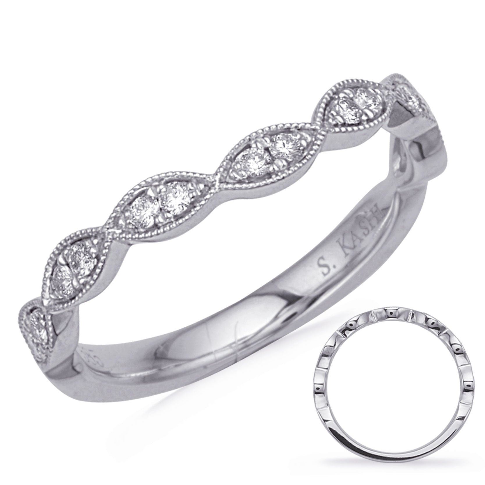 This Band is available in 14K White Gold. There are a total of 14 stones. There are Round with a total carat weight of 0.16 set in a Micro Pave|Micro Prong setting.