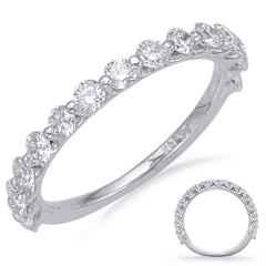This Band is available in 14K White Gold. There are a total of 15 stones. There are Round with a total carat weight of 0.94 set in a Shared Prongs setting.