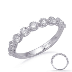 This Band is available in 14K White Gold. There are a total of 9 stones. There are Round with a total carat weight of 1.1 set in a setting.