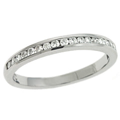 This Band is available in 14K White Gold. There are a total of 20 stones. There are Round with a total carat weight of 0.27 set in a Channel Set setting.