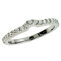 This Band is available in 14K White Gold. There are a total of 19 stones. There are Round with a total carat weight of 0.31 set in a Shared Prongs setting.