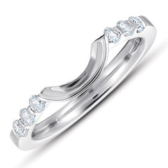 This Band is available in 14K White Gold. There are a total of 6 stones. There are Round with a total carat weight of 0.28 set in a Prong Set setting.