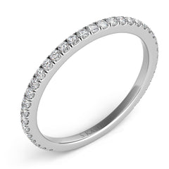This Band is available in 14K White Gold. There are a total of 35 stones. There are Round with a total carat weight of 0.32 set in a Micro Prong setting.