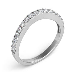 This Band is available in 14K White Gold. There are a total of 17 stones. There are Round with a total carat weight of 0.43 set in a Micro Prong setting.