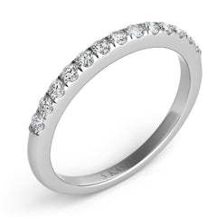 This Band is available in 14K White Gold. There are a total of 13 stones. There are Round with a total carat weight of 0.24 set in a Prong Set setting.