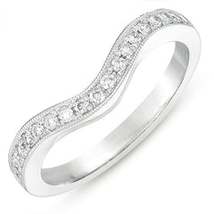 This Band is available in 14K White Gold. There are a total of 19 stones. There are Round with a total carat weight of 0.25 set in a Micro Pave setting.