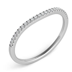 This Band is available in 14K White Gold. There are a total of 25 stones. There are Round with a total carat weight of 0.11 set in a Micro Prong setting.
