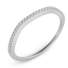 This Band is available in 14K White Gold. There are a total of 33 stones. There are Round with a total carat weight of 0.1 set in a Micro Prong setting.