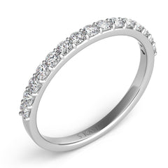 This Band is available in 14K White Gold. There are a total of 16 stones. There are Round with a total carat weight of 0.35 set in a Micro Prong setting.