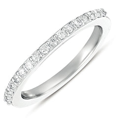This Band is available in 14K White Gold. There are a total of 17 stones. There are Round with a total carat weight of 0.25 set in a setting.