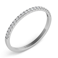 This Band is available in 14K White Gold. There are a total of 21 stones. There are Round with a total carat weight of 0.14 set in a Micro Prong setting.