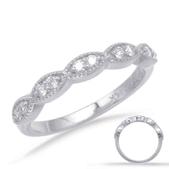 This Band is available in 14K White Gold. There are a total of 10 stones. There are Round with a total carat weight of 0.22 set in a Micro Prong setting.