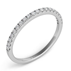 This Band is available in 14K White Gold. There are a total of 20 stones. There are Round with a total carat weight of 0.2 set in a Micro Prong setting.