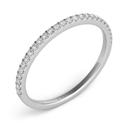 This Band is available in 14K White Gold. There are a total of 28 stones. There are Round with a total carat weight of 0.12 set in a Micro Prong setting.