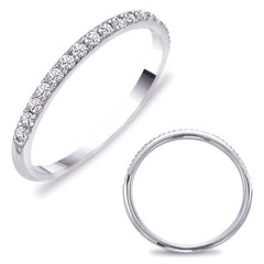 This Band is available in 14K White Gold. There are a total of 17 stones. There are Round with a total carat weight of 0.21 set in a Micro Prong setting.