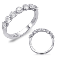 This Band is available in 14K White Gold. There are a total of 7 stones. There are Round with a total carat weight of 0.79 set in a Prong Set setting.