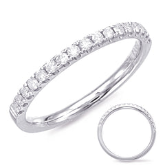 This Band is available in 14K White Gold. There are a total of 17 stones. There are Round with a total carat weight of 0.22 set in a Micro Prong setting.
