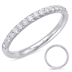 This Band is available in 14K White Gold. There are a total of 17 stones. There are Round with a total carat weight of 0.27 set in a Micro Prong setting.