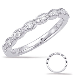 This Band is available in 14K White Gold. There are a total of 24 stones. There are Round with a total carat weight of 0.17 set in a Micro Prong setting.