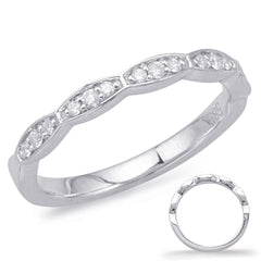 This Band is available in 14K White Gold. There are a total of 15 stones. There are Round with a total carat weight of 0.15 set in a Micro Prong|Shared Prongs setting.