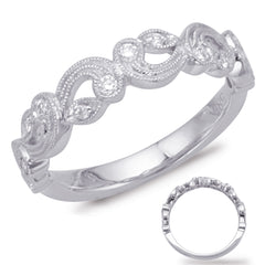 This Band is available in 14K White Gold. There are a total of 14 stones. There are Round with a total carat weight of 0.18 set in a Bezel Set|Micro Prong setting.