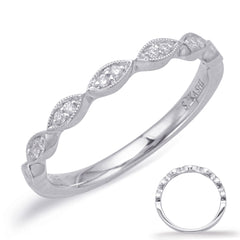 This Band is available in 14K White Gold. There are a total of 14 stones. There are Round with a total carat weight of 0.07 set in a Micro Prong|Shared Prongs setting.
