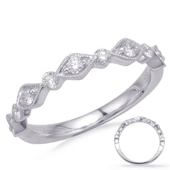 This Band is available in 14K White Gold. There are a total of 9 stones. There are Round with a total carat weight of 0.31 set in a Prong Set setting.