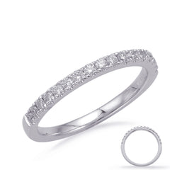 This Band is available in 14K White Gold. There are a total of 17 stones. There are Round with a total carat weight of 0.26 set in a Micro Prong setting.