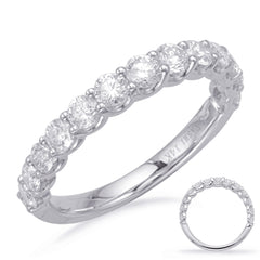 This Band is available in 14K White Gold. There are a total of 13 stones. There are Round with a total carat weight of 0.99 set in a Prong Set|Shared Prongs setting.