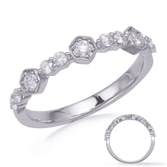 This Band is available in 14K White Gold. There are a total of 11 stones. There are Round with a total carat weight of 0.33 set in a Micro Prong|Prong Set|Shared Prongs setting.