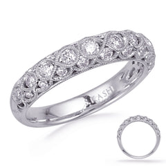 This Band is available in 14K White Gold. There are a total of 28 stones. There are Round with a total carat weight of 0.54 set in a Channel Set setting.