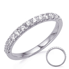 This Band is available in 14K White Gold. There are a total of 13 stones. There are Round with a total carat weight of 0.43 set in a Micro Prong setting.