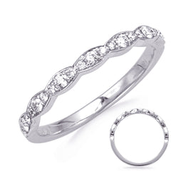 This Band is available in 14K White Gold. There are a total of 21 stones. There are Round with a total carat weight of 0.23 set in a Micro Prong setting.